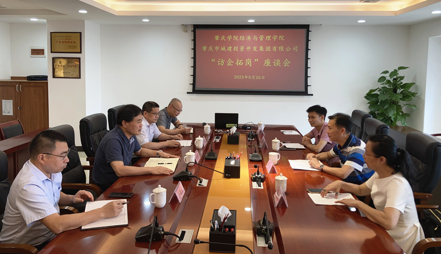 本网讯 为促进毕业生高质量充分就业,5月26日,经济与管理学院黎天宇书记、颜春萍副书记、雷洪副院长赴肇庆市城建投资开发集团开展“访企拓岗”专项行动,了解用人单位实际需求,实地考察用人单位工作环境,着力开拓毕业生高质量就业渠道。