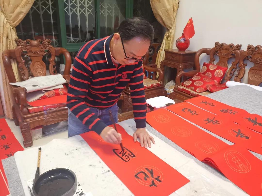 为了完成大量的春联书写任务,书协组织书法家们“移动办公”,在家里开辟“战场”,由每位会员分头在家里泼墨挥毫。