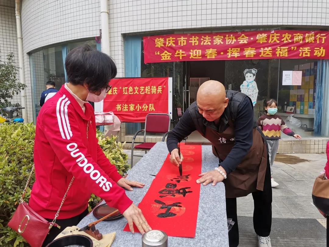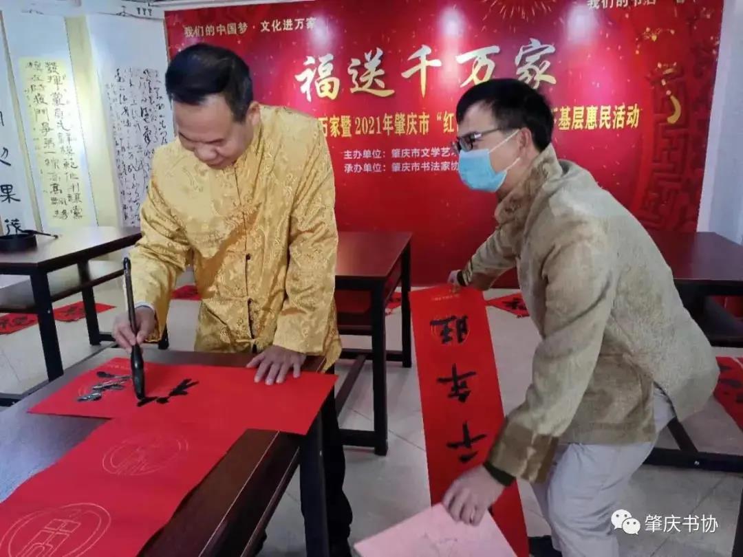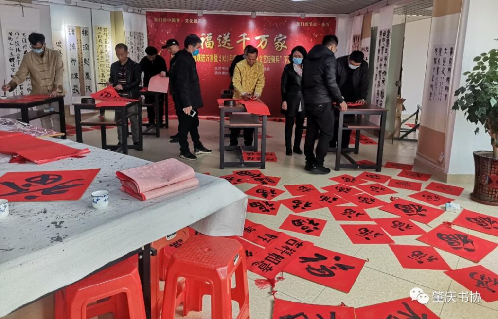 自1月中旬起,书协先后走进广宁县横山社区、肇庆高新区、鼎湖坑口、高要水南镇开展文化下基层活动。书法家们将春联送到农户家中,在企业举行书画挥春笔会,给道德模范、企业一线工人、环卫工人、学生代表送福表意。